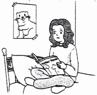 【解析】:1. 细节理解题。根据插图1中Holly手中杂志的封面显示“ANIMALS”,可知她读的是动物杂志。故答案为ANIMALS。