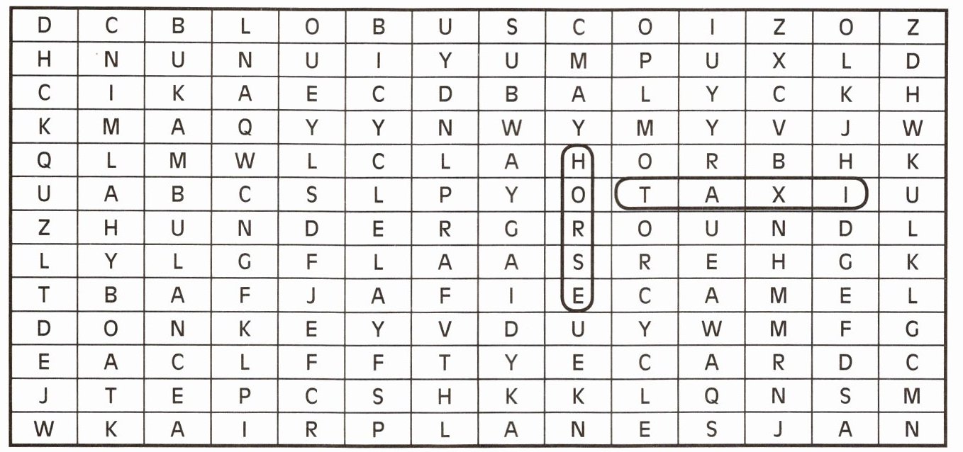 关于交通运输方式的单词,你还记得哪些呢?请你仿照示例,在下面的表格中找出不少于6个表示交通运输方式的单词。