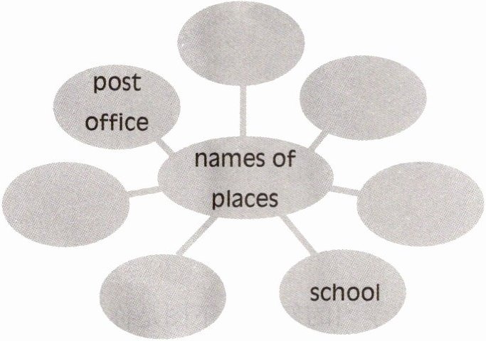 1. 关于地点名称的单词和短语,你还记得哪些呢?想一想,查一查,完成你的词库吧。