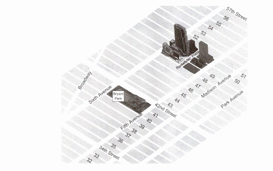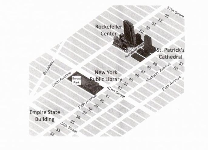3. Walk up Sixth Avenue to 49th Street. You're standing in the middle of the 19 buildings of Rockefeller Center. Turn right on 49th Street, walk another block, and turn left. You're in Rockefeller Plaza. In the winter, you can ice - skate in the rink there.