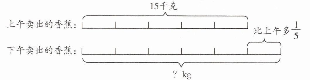 观察上面的线段图可知:下午卖出的香蕉数= 上午卖出的香蕉数+下午比上午多卖出的香蕉数= 上午卖出的香蕉数$×(1+\frac{1}{5})$。