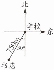 2.如图,书店在学校的南偏西$30^{\circ }$方向750m处,那么学校在书店的(