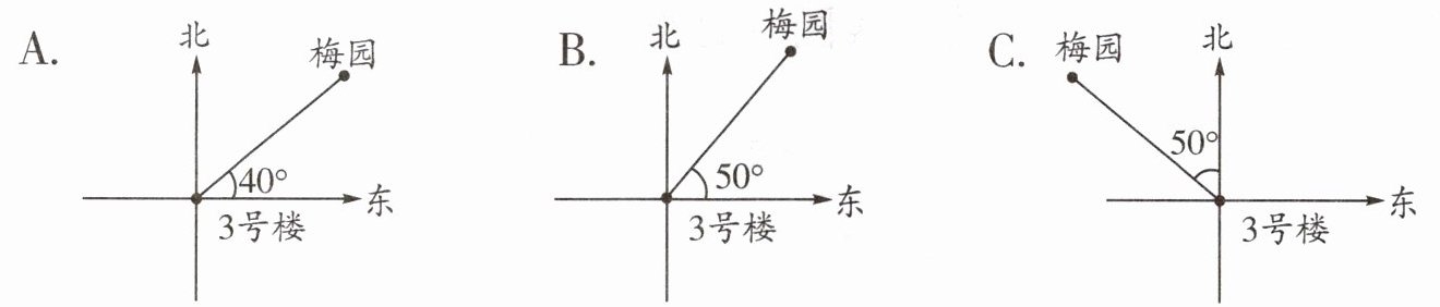 3.以3号楼为观测点,梅园在北偏东$50^{\circ }$的方向上,下图中正确的是(