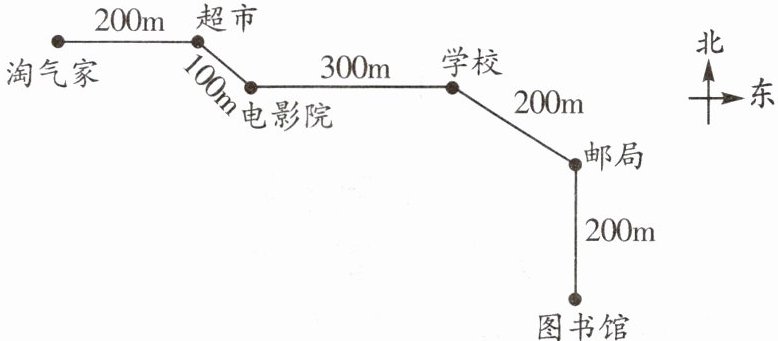 (1)淘气周末去图书馆看书,从家出发向(