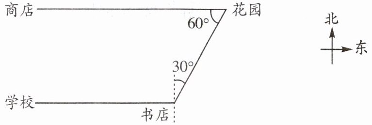 )行走到花园,最后向西行走到商店。A.北偏东$30^{\circ }$