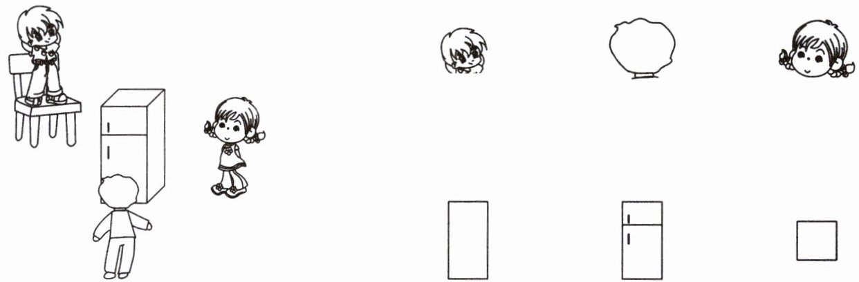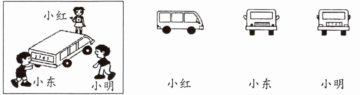 2. 他们站在不同的地方,看到的分别是哪幅图?