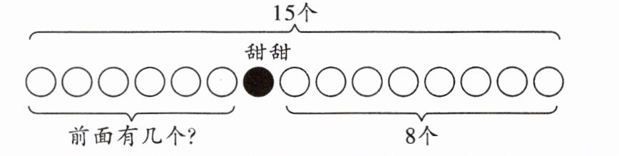【例 2】15 个同学排成一排去测视力,甜甜的后面有 8 个同学,她的前面有几个同学?