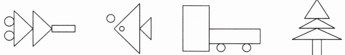 (3)用七巧板照样子拼一拼,想一想,它们像什么?
