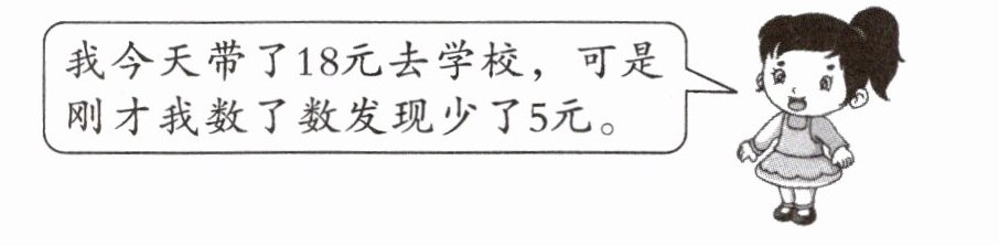 【解析】:小青原本带了18元,少了5元,求剩下的钱数,用减法计算,即带的总钱数减去少了的钱数。