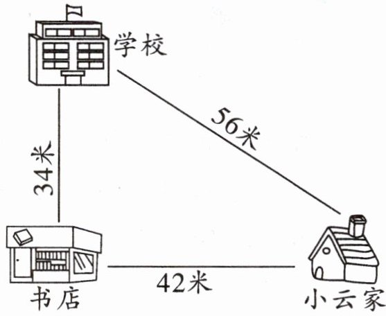 2. (1)小云从家到书店再到学校,共走了多少米?