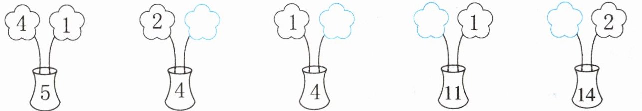 第四个图,花瓶里是$11$,上面一个数字是$1$,则另一个数字为$11 - 1 = 10$;