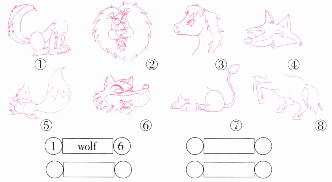 (从左到右) 2 lion 7 3 horse 8 4 fox 5