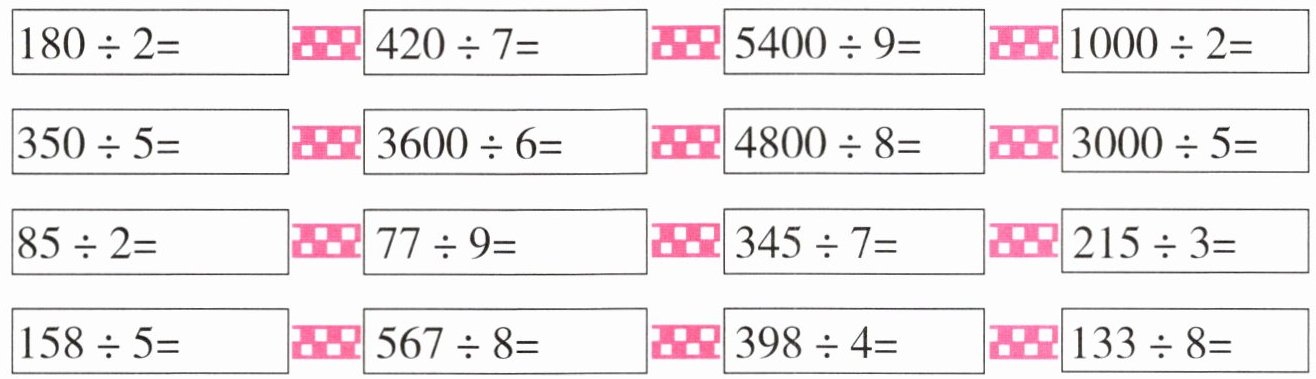 【答案】:90;60;600;500;70;600;600;600;42$\cdots\cdots$1;8$\cdots\cdots$5;49$\cdots\cdots$2;71$\cdots\cdots$2;31$\cdots\cdots$3;70$\cdots\cdots$7;99$\cdots\cdots$2;16$\cdots\cdots$5。