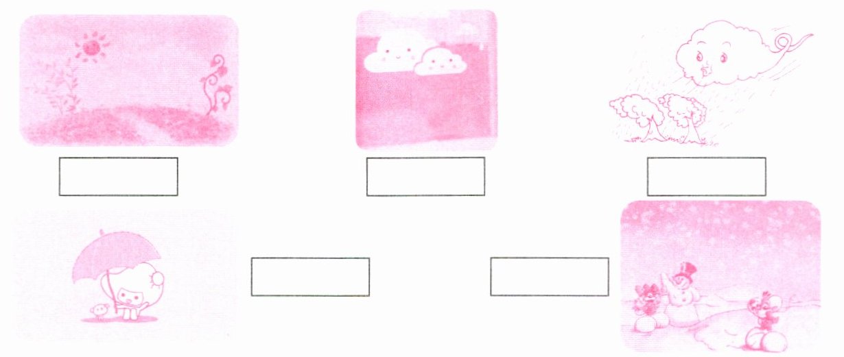 1 一年四季中,天气小演员扮演的角色各不相同。(看图识天气,将正确选项填到方框里)
