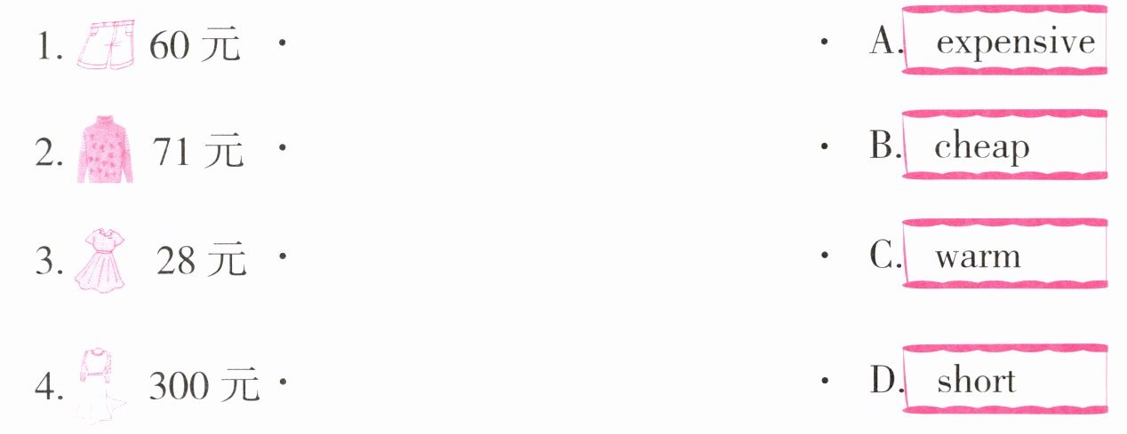 1 周日卡卡和妈妈去逛街,各种漂亮的衣服让卡卡目不暇接。(连线)