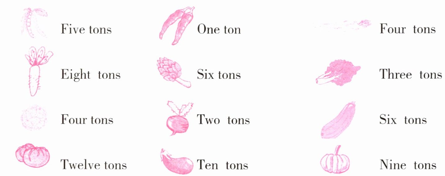 4 秋天到了,成熟的蔬菜散发着诱人的味道。(算一算一共有多少吨蔬菜)