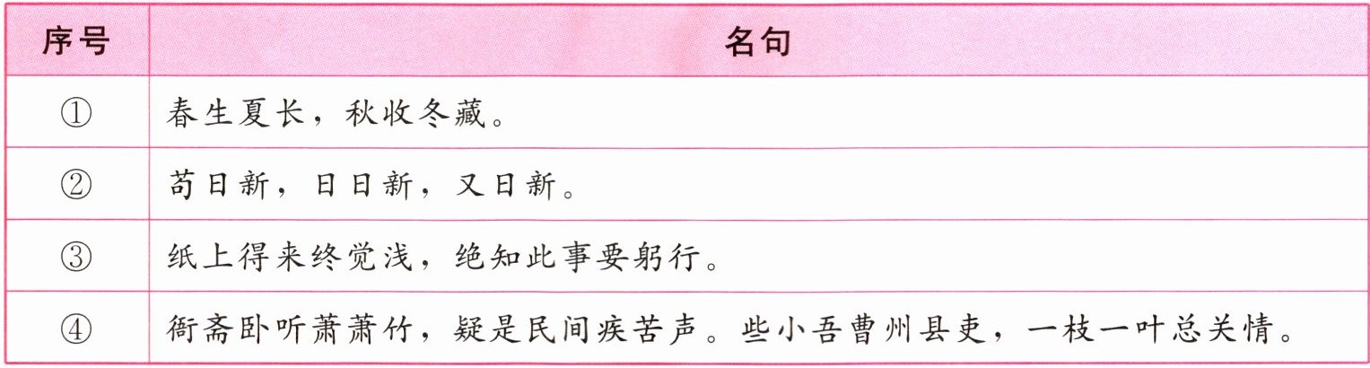 11. 学校为弘扬中华优秀传统文化,修建了文化长廊,展示了以下名句。