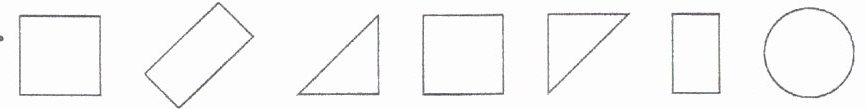 二、下列图形中是正方形的画“□”,是长方形的画“√”,是圆形的画“○”,是三角形的画“△”。