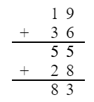 $10 + 20 + 7$ $54 + 15 + 12$◯<