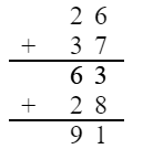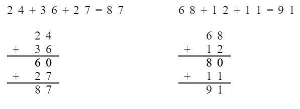 $26 + 52 + 19 = $ $24 + 36 + 27 = $ $68 + 12 + 11 = $