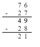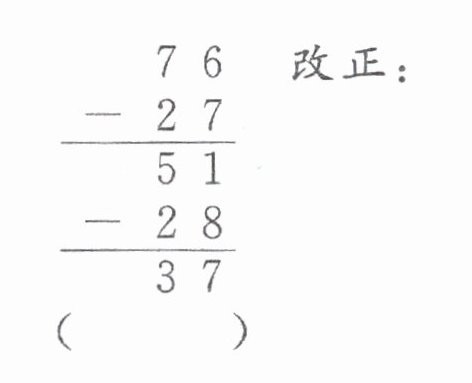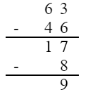 $\begin{array}{r}63 \\ -46 \\ \hline 27 \\ -8 \\ \hline 19\end{array} $ 改正: ( )