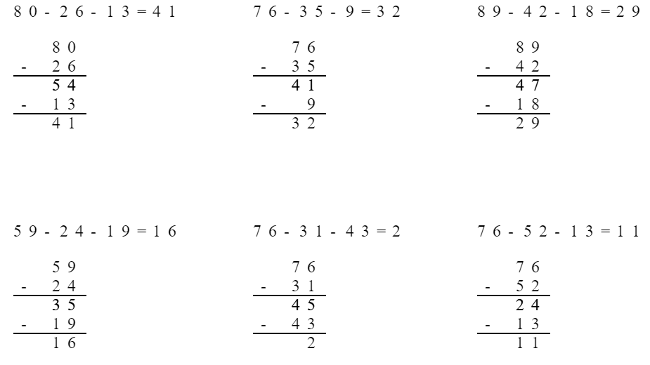 $80 - 26 - 13 = $ $76 - 35 - 9 = $ $89 - 42 - 18 = $