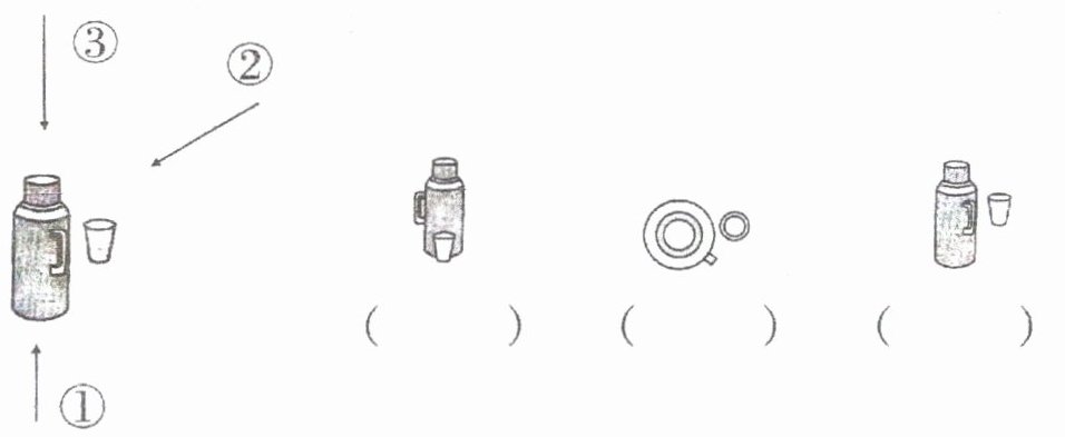三、下面的暖水瓶和水杯分别是从哪个位置看到的?将相应的序号填在( )里。(9分)