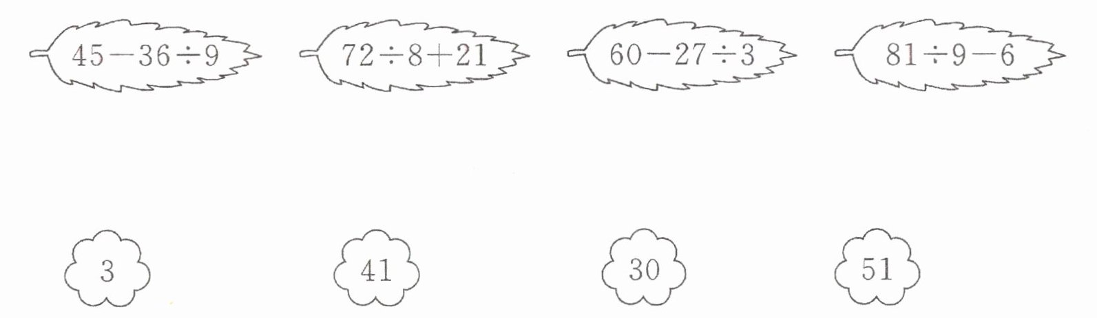 $ 45 - 36 ÷ 9 $——41 $ 72 ÷ 8 + 21 $——30