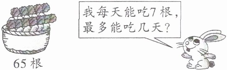 $65÷7=9$(天)$\cdots\cdots2$(根)