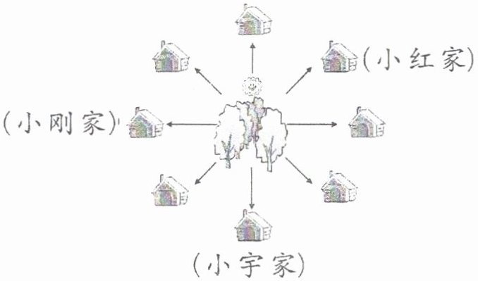 例2 小宇、小红、小刚三人去森林里探险,他们迎着太阳走,走着走着就迷路了,这时太阳正慢慢下山。小宇只记得他的家在森林的东面。小红说:“我的家在西北方向。”小刚说:“我的家在南面。”你能帮他们找到自己的家吗?