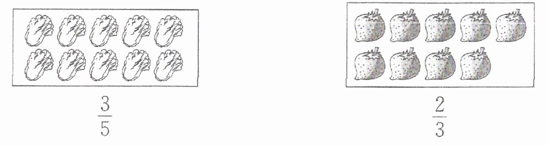 分数$\frac{3}{5}$表示把这$10$棵白菜看作一个整体,平均分成$5$份,取其中的$3$份。