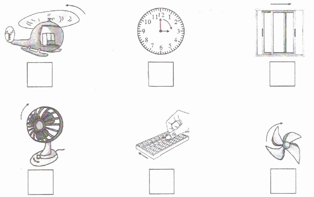 二、下面物体的运动是平移的画“△”,是旋转的画“○”。(6分)