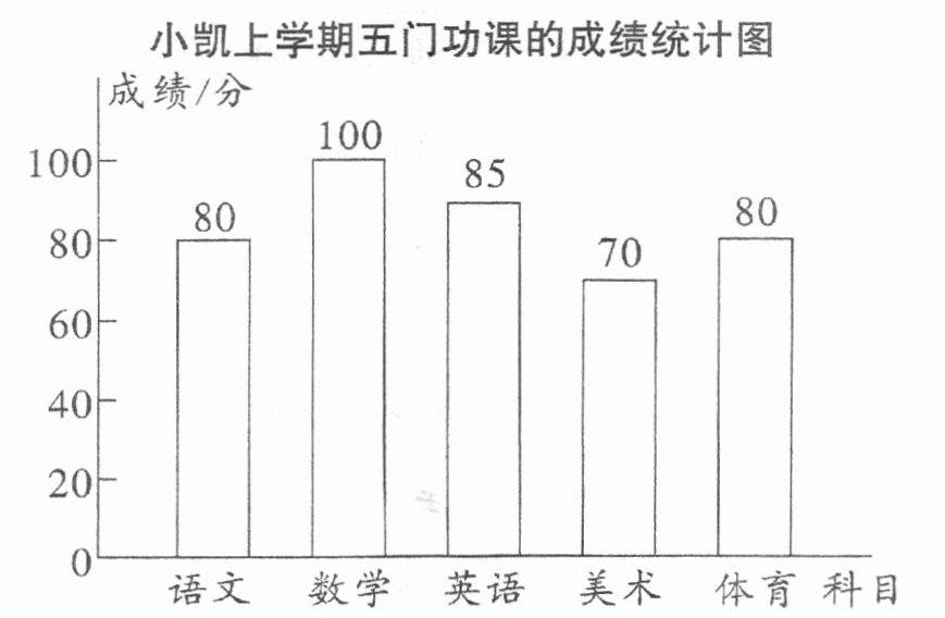 5. 下面是小凯上学期五门功课的成绩统计图。