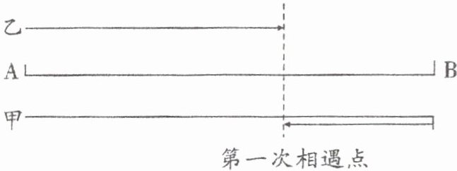 例2 甲、乙两辆汽车同时从A地开往B地。甲车每时行58千米,乙车每时行42千米。甲车到达B地后立即返回,6时后两车相遇,求A、B两地之间的距离。