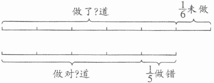 例1 小强参加智力测验,一共要做90道题。他有$\frac{1}{6}$的题没做,做出的题有$\frac{1}{5}$做错了,小强一共做对了多少道题?