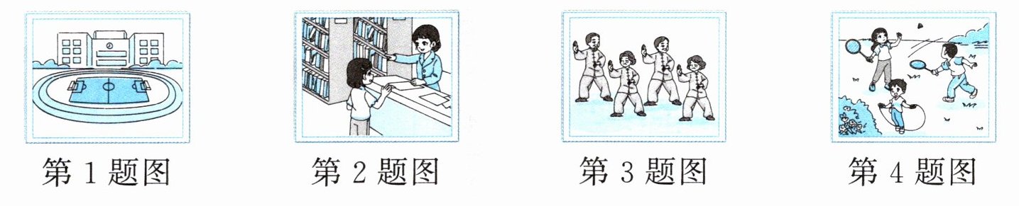 一、Sally 在新社区拍了很多照片。看照片,判断句子与照片是(√)否(×)相符。