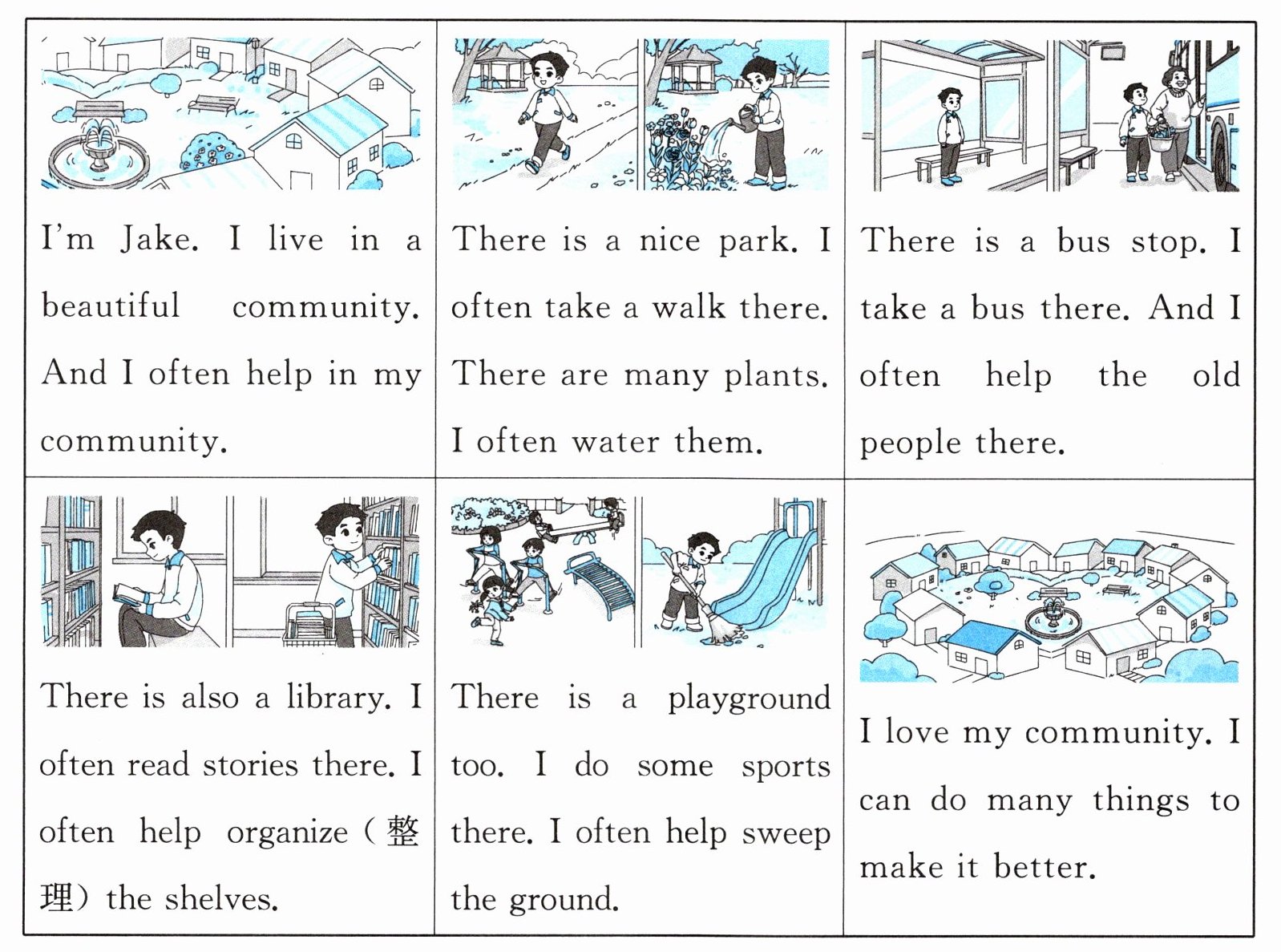 任务二:你会如何帮助你的社区呢?仿照绘本,写一写你的帮助。______
