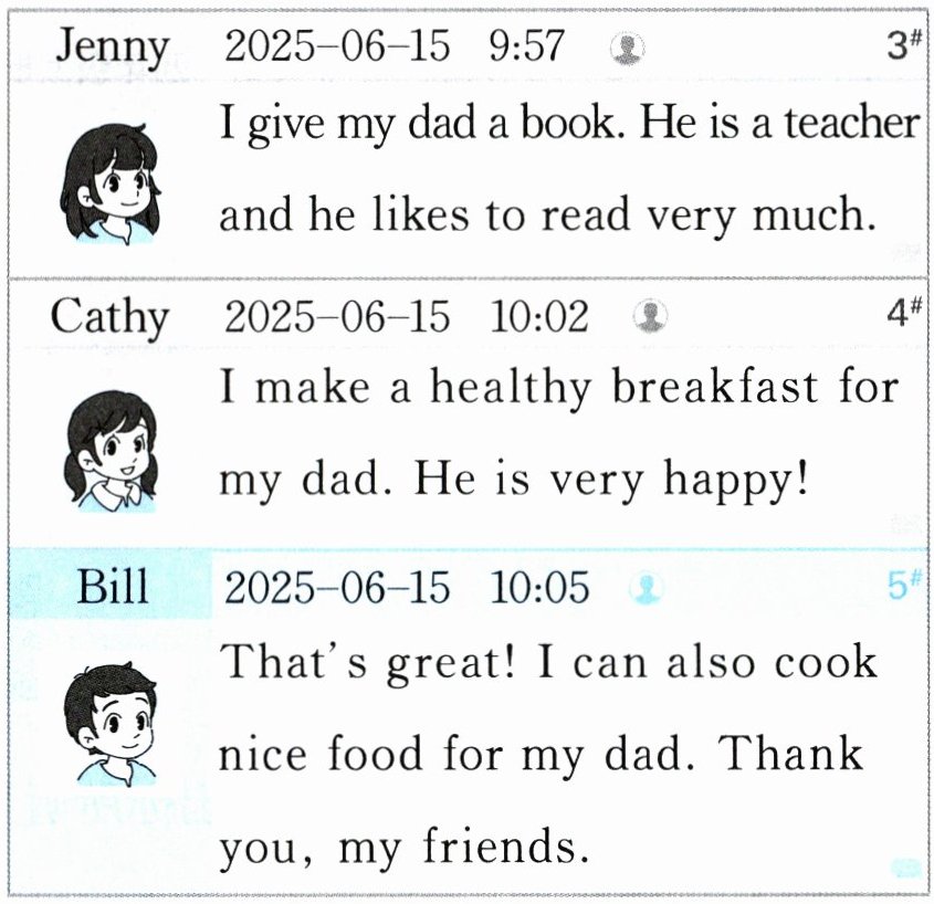 )2. Jenny gives her dad a ______.A. cake B. card C. book