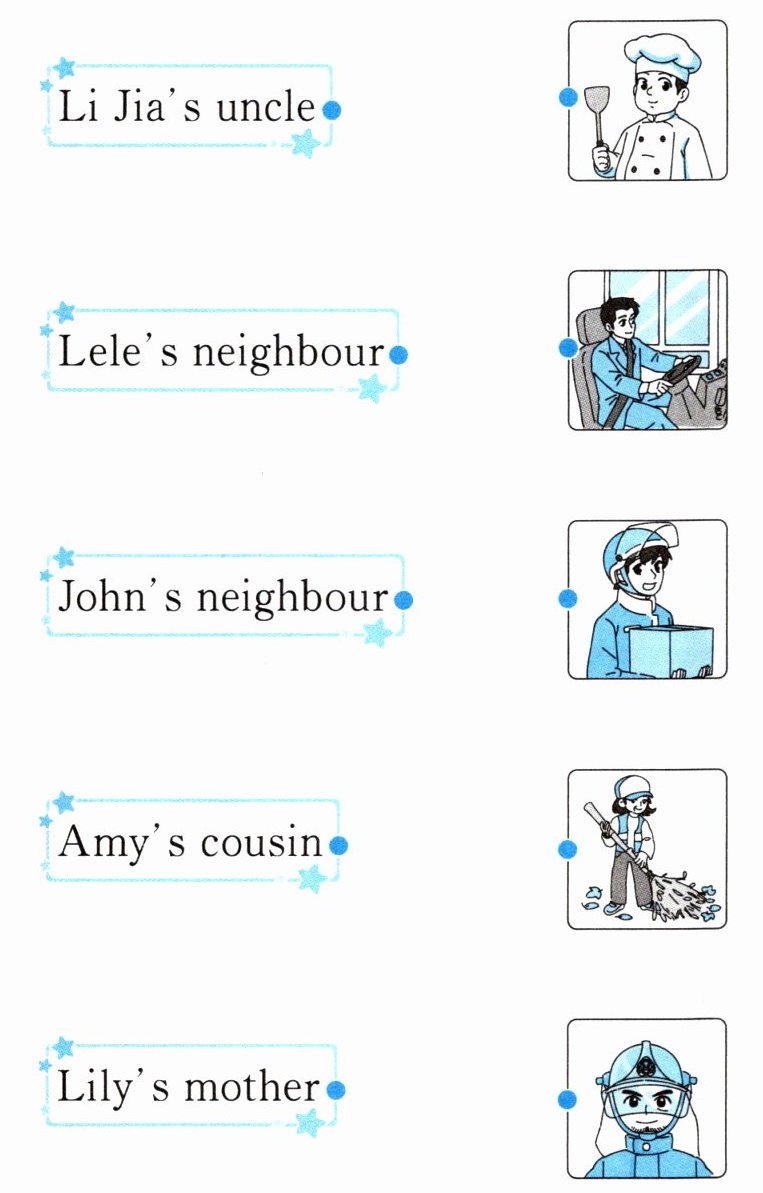 分析:关键信息为“Lily's mother”和“cleaner”。故将Lily's mother与第四幅图连线。