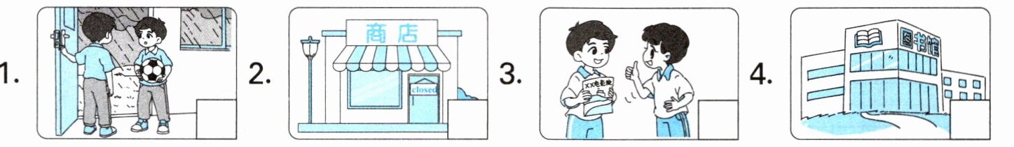 二、看图,根据同学们的活动,选择正确的选项补全他们的对话。