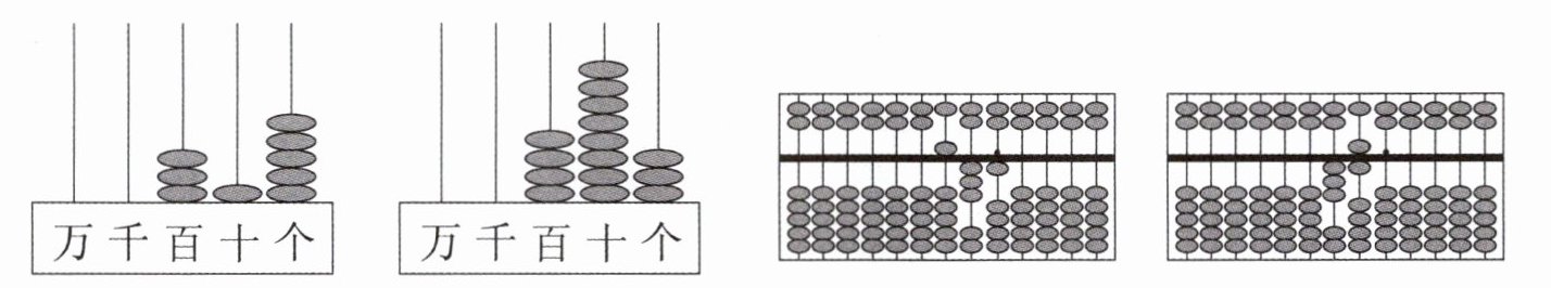 一、写出下面计数器和算盘上表示的数,再口头读一读