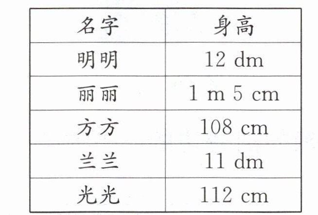 从矮到高的顺序为:丽丽、方方、兰兰、光光、明明。