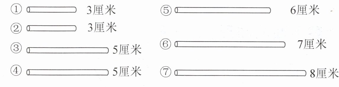 1. 下面的7根小棒,能围成平行四边形的是哪四根?