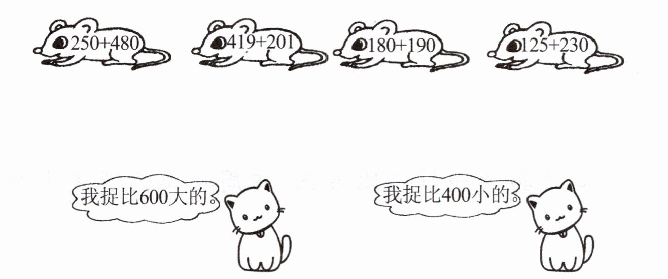 捉比400小的猫,应捉$370$和$355$,即第三只和第四只老鼠,