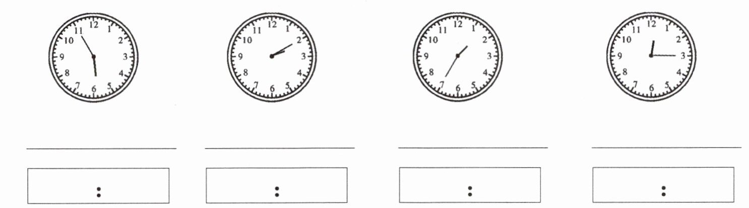 【答案】:5时55分 5:55 2时10分 2:10 1时35分 1:35 12时15分 12:15