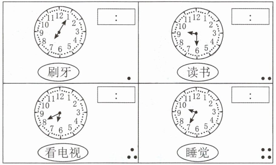 1. 下图是小红的一天,请你帮她写出作息时间。