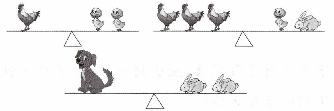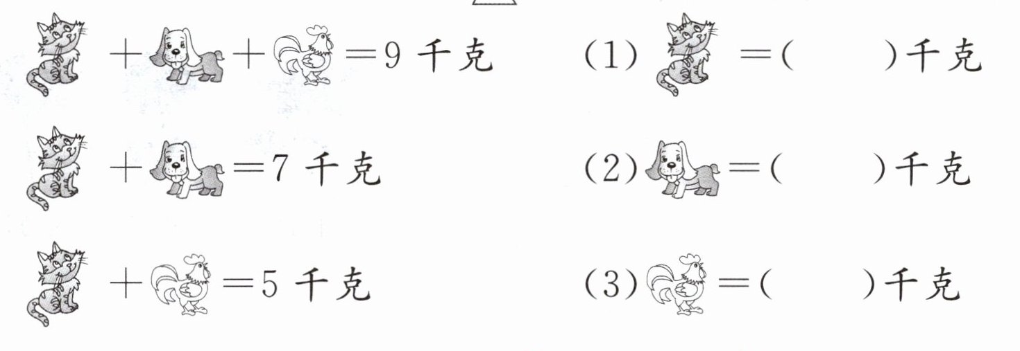 1. 下图中一只小鸭子重1千克,一只公鸡重(