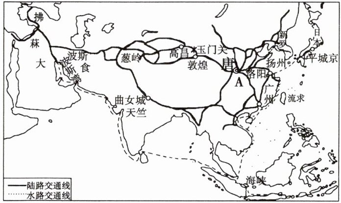 材料二 据记载,当时有七十多个国家和地区与唐朝有外交关系,首都侨居有大量外国客商、往来使节、僧侣、学者、留学生等,最多达万人以上。仅日本的遣唐使就达十多批。