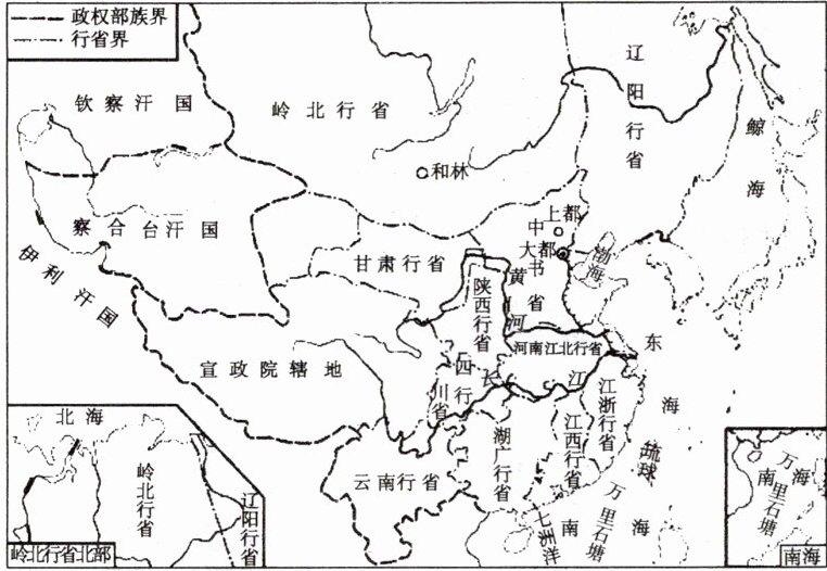 (2) 行省制度。元朝疆域辽阔,为了对全国实行有效统治。