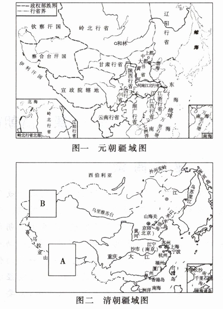 (3)图二中的B地自古以来就是中国的领土,清朝采取哪些措施加强对该地区的管理?